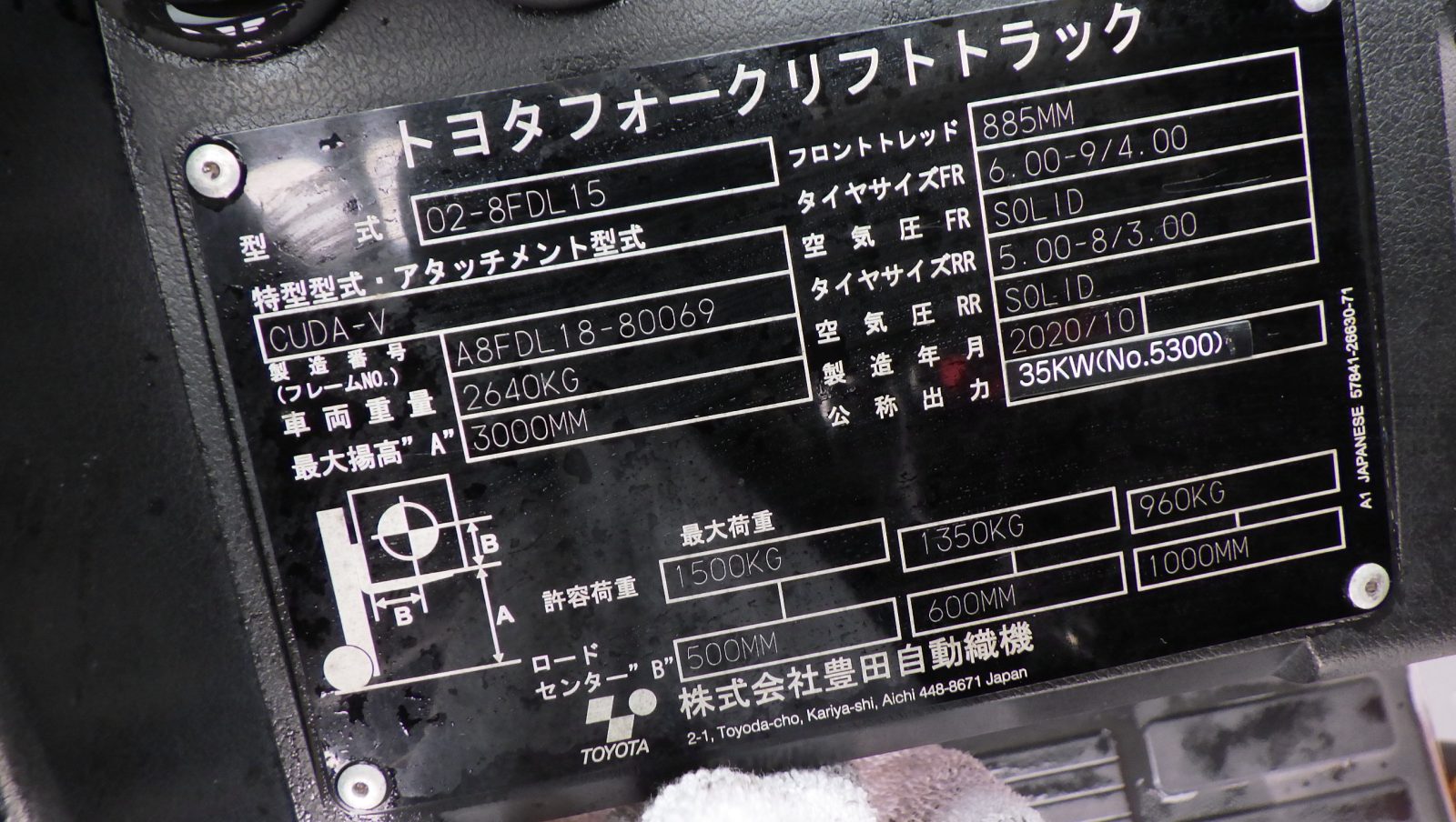 Bảng thông số kỹ thuật xe nâng dầu 1.5 tấn Toyota 02-8FDL15 serial A8FDL18-80069