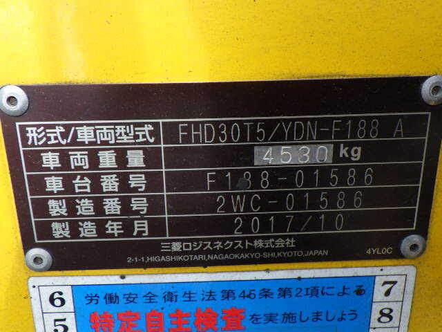 Bảng thông số kỹ thuật chính của xe nâng Mitsubishi FHD30T5 serial 2WC-01586
