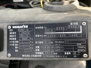 Bảng thông số kỹ thuật xe nâng dầu 3.5 tấn Komatsu FD35T-10 serial 135310