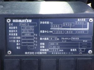 Thông số kỹ thuật của xe nâng dầu 4.0 tấn Komatsu FH40-2 serie 141153
