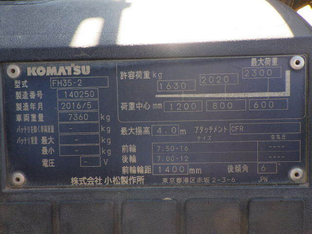 Thông số kỹ thuật của xe nâng dầu Komatsu 3.5 tấn FH35-2 serial 140250: