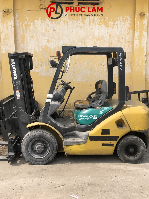 Xe nâng dầu Komatsu ngồi lái 2.5 tấn FD25W-15 được trang bị số sàn, lốp hơi, tháp cao 3m, càng 920mm, có chức năng gật gù. Xe nâng Phúc Lâm cam kết giá thành rẻ nhất thị trường