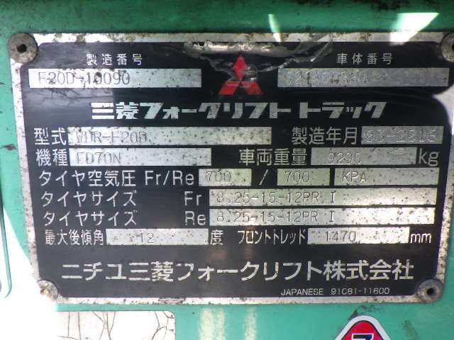 Thông số kỹ thuật của xe nâng dầu Mitsubishi 7.0 tấn MIT-FD70N serial F20D-10090: