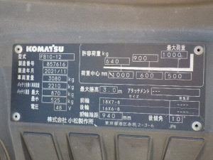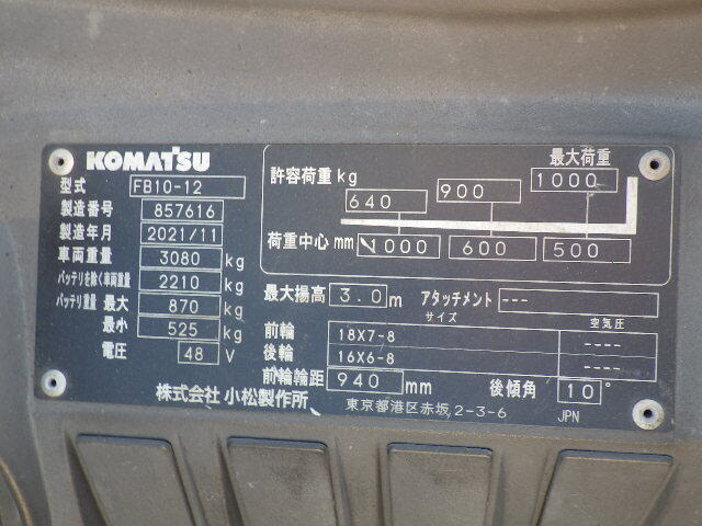 Thông số kỹ thuật của xe nâng điện 1.0 tấn Komatsu model FB10-12 serial 857616
