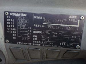 Bảng thông số kỹ thuật xe nâng điện 1.5 tấn Komatsu FB15-12 serial 837358