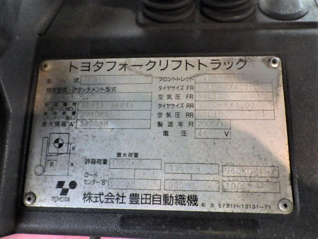 Bảng thông số kỹ thuật xe nâng điện 1.5 tấn Toyota 7FB15 serial 7FB18-36246