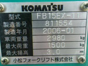 Bảng thông số kỹ thuật xe nâng điện 1.5 tấn Komatsu FB15EX-11 serial 811554
