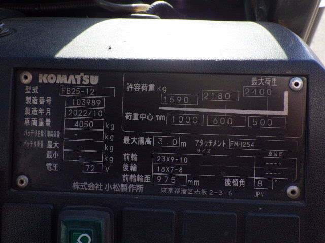 Bảng thông số kỹ thuật xe nâng điện 2.5 tấn Komatsu FB25-12 serial 103989