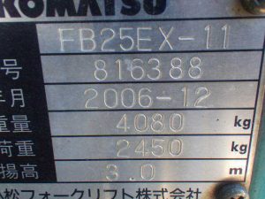Bảng thông số kỹ thuật của xe nâng điện 2.5 tấn Komatsu model FB25EX-11 serial 816388