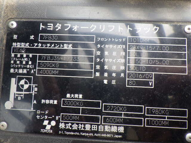 Bảng thông số kỹ thuật xe nâng điện 3.0 tấn Toyota 7FB30 serial 7FBJ35-17733