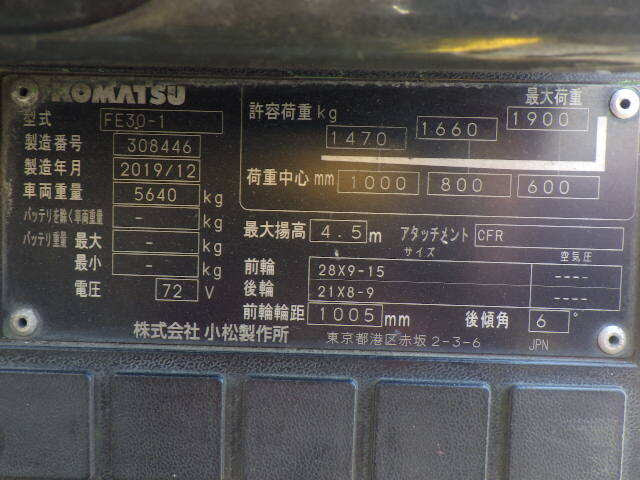Bảng thông số kỹ thuật xe nâng điện 3.0 tấn Komatsu FE30-1 serial 308446
