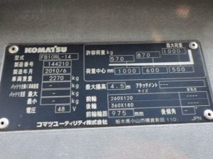 Thông số kỹ thuật của xe nâng điện đứng lái 1.0 tấn Komatsu model FB10RL serial 144210