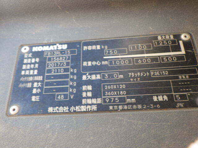 Bảng thông số kỹ thuật xe nâng điện đứng lái 1.3 tấn Komatsu FB13RL-15