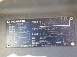 Bảng thông số kỹ thuật xe nâng điện đứng lái 1.5 tấn Komatsu FB15RW-15 serial 160230