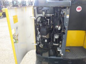Xe sử dụng hệ thống động cơ điện 48V kết hợp với bình điện dung lượng lớn, mang lại khả năng vận hành mượt mà, ít tiếng ồn và không phát sinh khí thải. Đây là yếu tố rất quan trọng đối với các môi trường làm việc trong nhà như kho thực phẩm, dược phẩm hoặc nhà máy sản xuất linh kiện điện tử. Ngoài ra, động cơ điện còn giúp xe tăng tốc êm, dễ kiểm soát và giảm thiểu tình trạng giật cục khi di chuyển hoặc nâng hạ. Khả năng tiết kiệm năng lượng của hệ thống điện cũng giúp xe hoạt động được trong thời gian dài sau mỗi lần sạc.