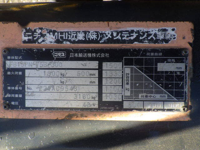 Thông số kỹ thuật của xe nâng điện Nichiyu FB15PN-75B-300 serial 221AC9548