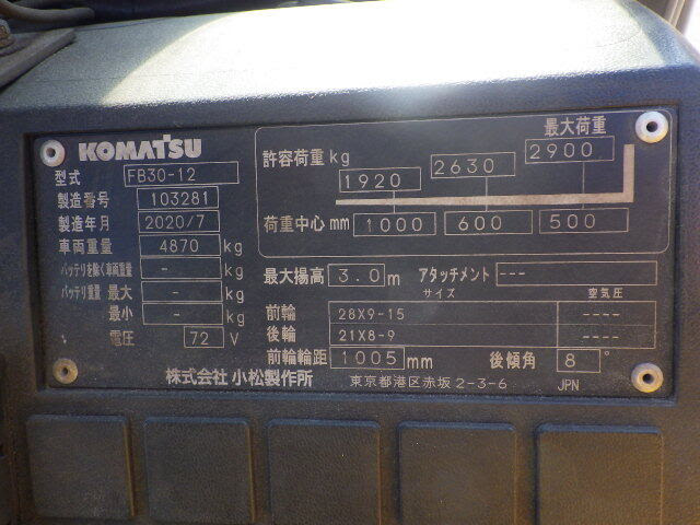 Thông số kỹ thuật của xe nâng điện Komatsu FB30-12 #103281