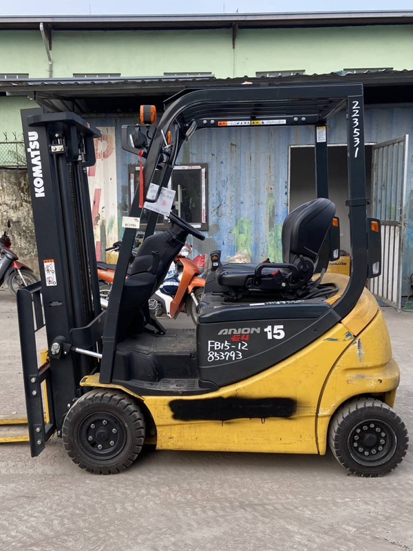 Xe nâng điện ngồi lái 1,5 tấn Komatsu FB15-12, sản xuất 2018, lốp đặc, nâng cao 3m, được sản xuất để sử dụng nguồn nhiên liệu sạch, không gây ô nhiễm không khí, tiếng ồn.